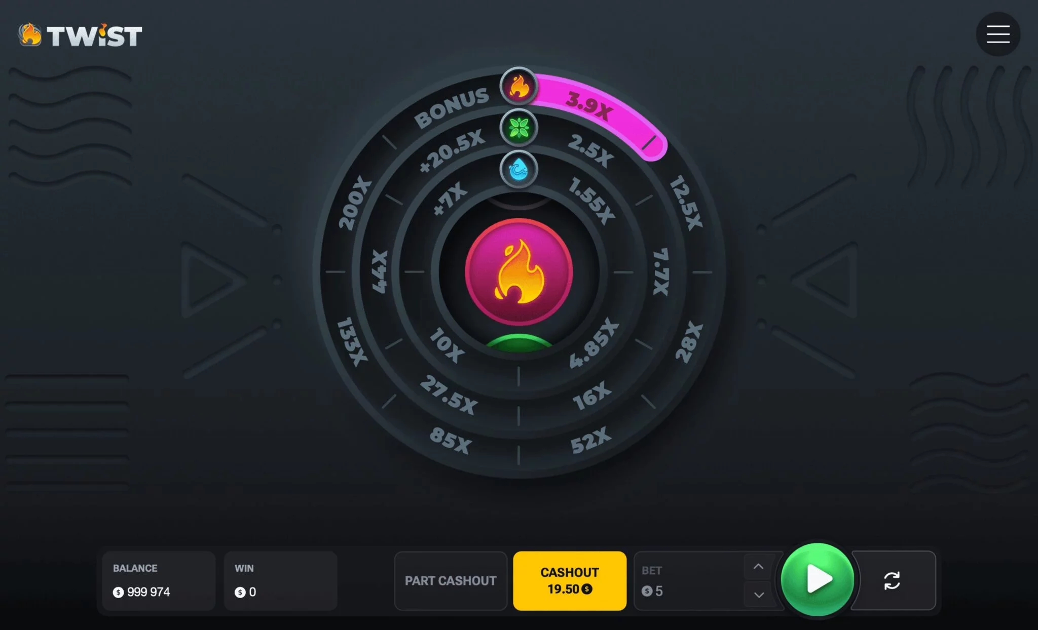 Unlike other crash games, Twist adds an elemental reel system, combining strategy and variety with the thrill of multipliers.